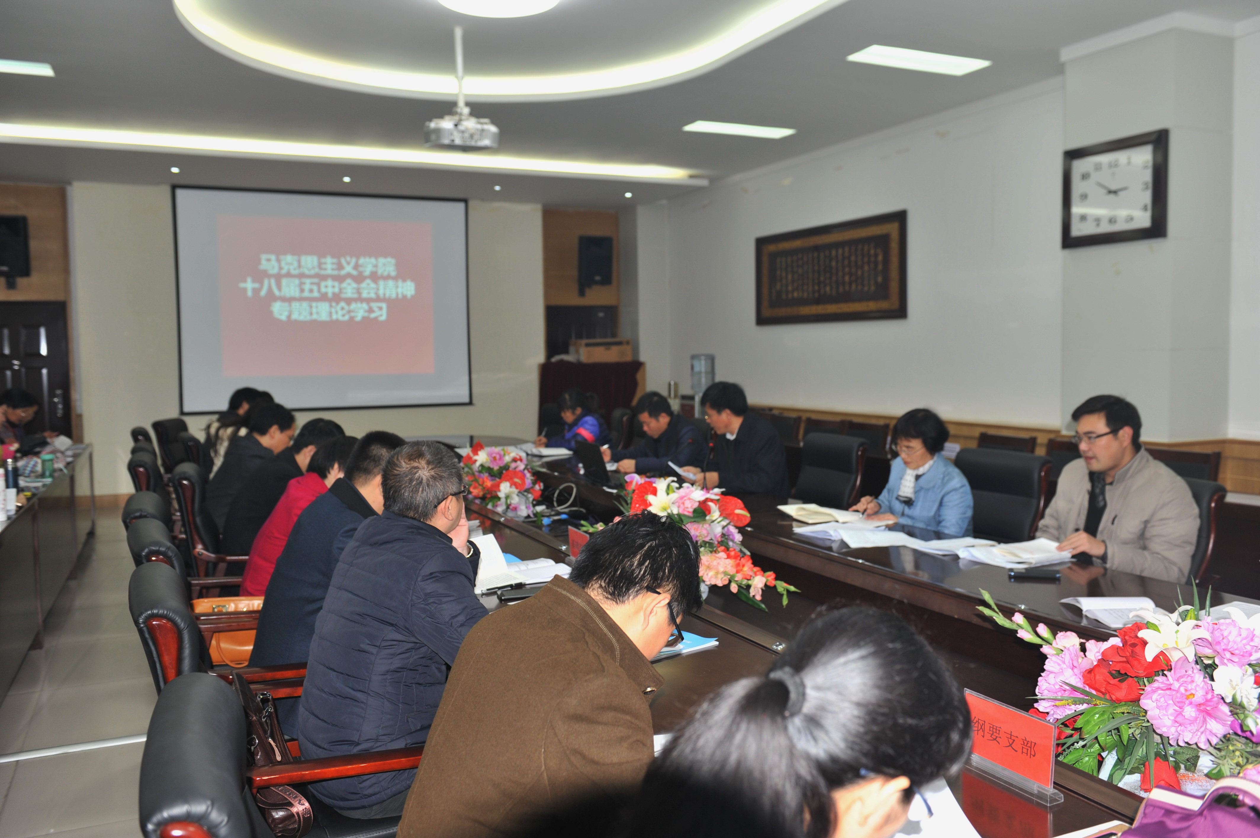 会上,李照修带领大家认真学习了中国共产党第十八届中央委员会第五次全体会议公报,并就《中共中央关于制定国民经济和社会发展第十三个五年规划的建议》进行了详细的解读。指出,《建议》从党和国家战略全局出发,明确提出“十三五规划”的指导思想、基本原则、目标要求、基本理念、重大举措,描绘了未来5年国家发展蓝图,具有较强的思想性、战略性、前瞻性、指导性,是动员全党全国各族人民夺取全面建成小康社会伟大胜利的纲领性文件。他强调,十八届五中全会是在全面建成小康社会进入决胜阶段召开的一次重要会议,作为思想政治理论课教师,要深刻认识十八届五中全会的重大意义,全面把握全会提出的一系列新思想、新论断、新观点、新部署和新要求,积极推进十八届五中全会精神“三进工作”。