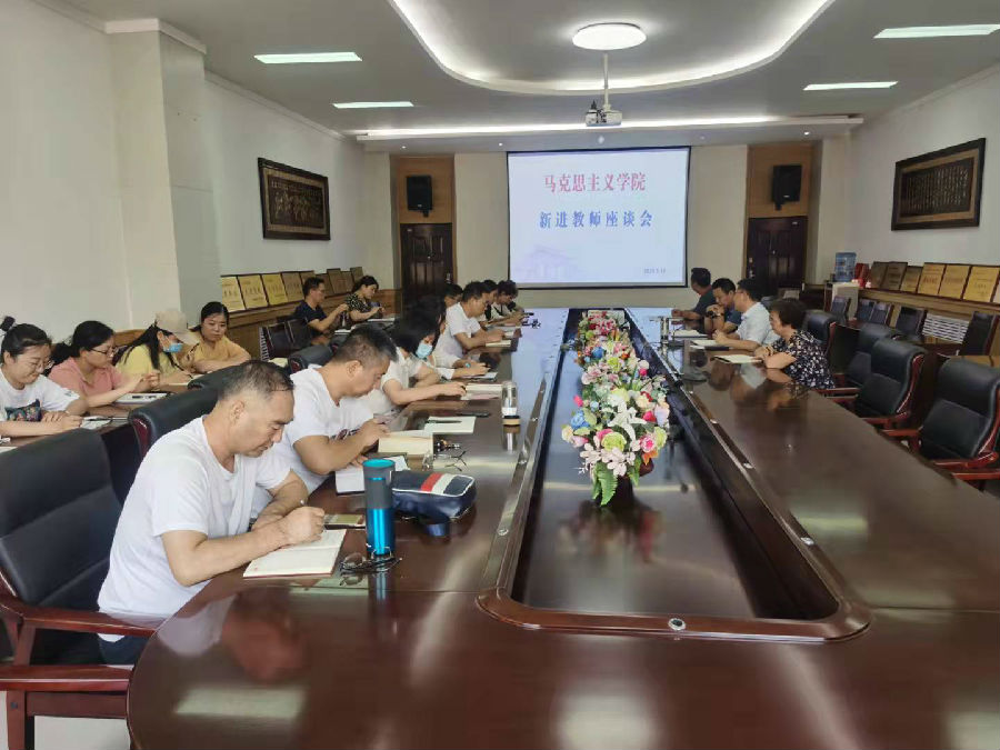 9月7日下午,学院在文科综合楼202会议室召开2021年新进教师座谈会。学院书记侯菊英、经理郑小九、副经理邵发军、教研室主任及学院教师代表和新进教师参加了座谈会。