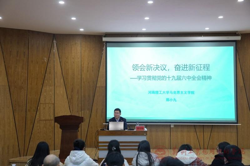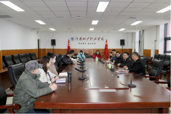 12月24日上午,郑小九与河南地矿职业学院思政课教师交流十九届六中全会精神。