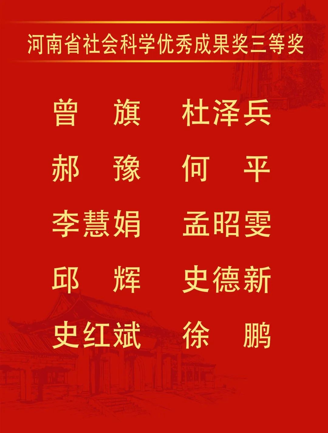 大会上,学院“元培名师”米卫娜、“师德标兵”王家涛、“河南省社会科学优秀成果奖一等奖”邵发军、“河南省社会科学优秀成果奖二等奖”王新刚、“河南省社会科学优秀成果奖三等奖”史德新,分别受到表彰!