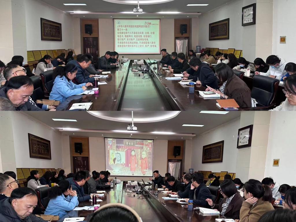 会上,与会人员共同观看了法治教育片《网络安全宣传视频》和《网络购物陷阱》。